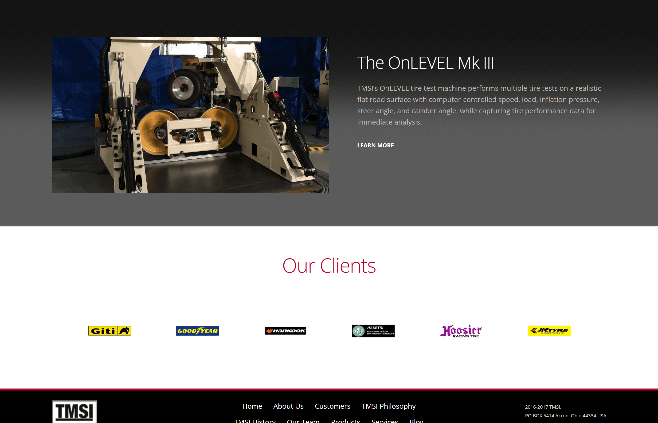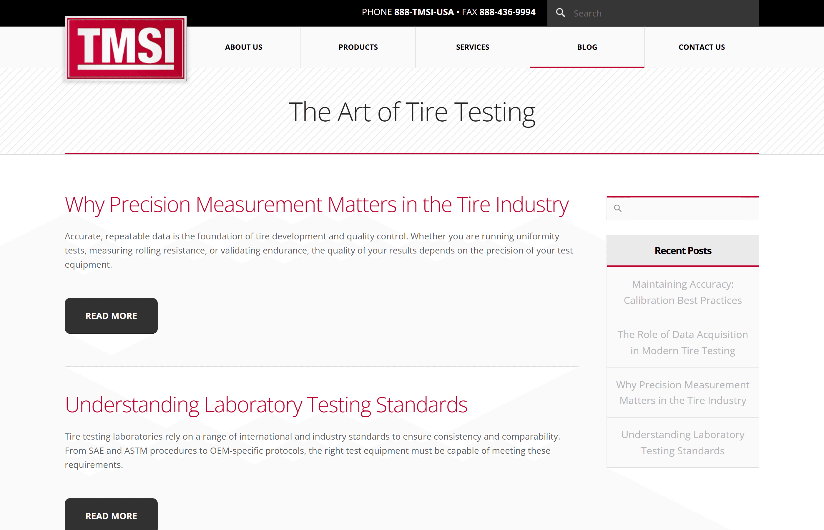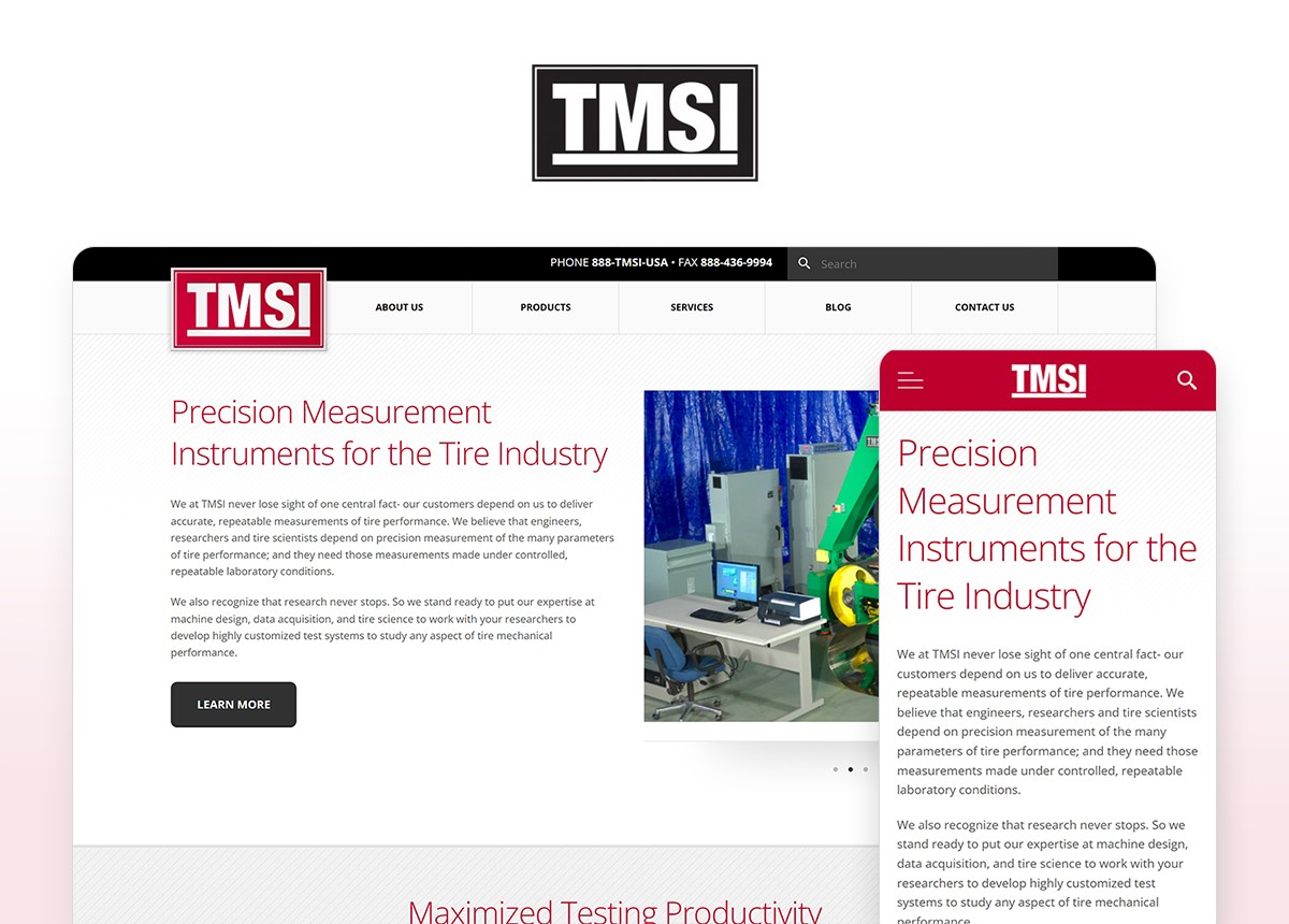 Test Management Systems, Inc. (TMSI), a tire calibration and testing company with offices in the US and China, required a redesigned website to better communicate with vendors and prospective clients. Their existing site at the time lacked clarity and did not reflect the technical credibility of the organization.